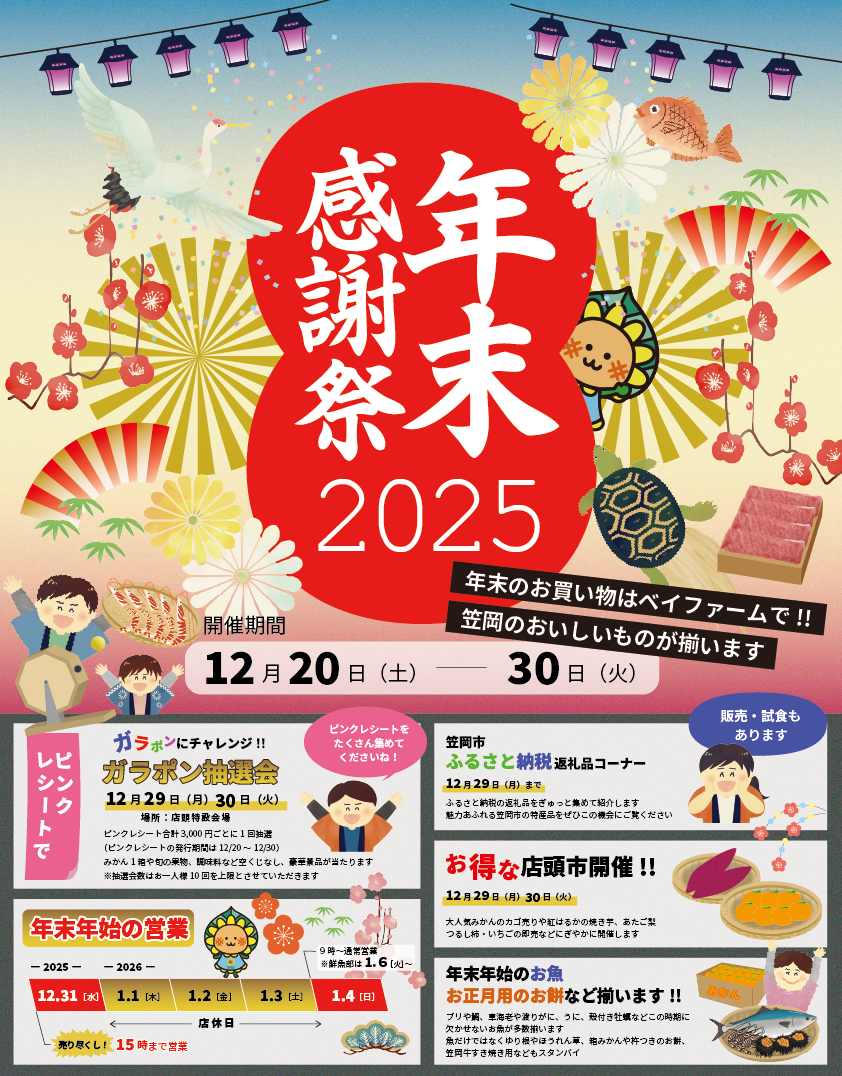 今年も後一ヶ月となりました。年末のお買い物はベイファームで!笠岡のおいしいものが揃います!